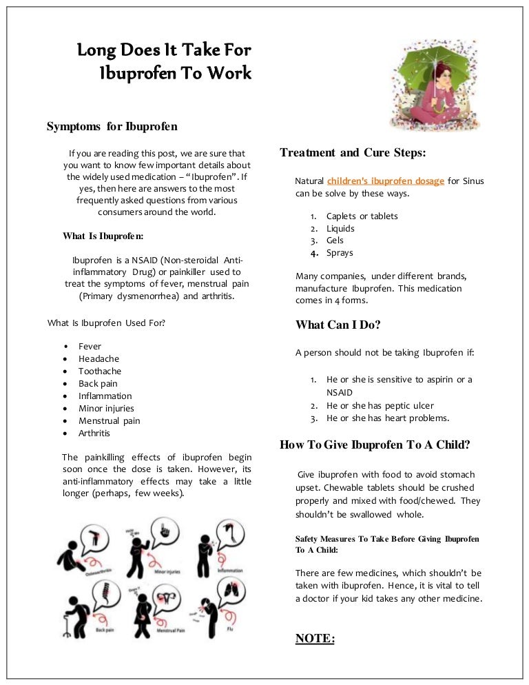 How Long Does It Take For Ibuprofen : For those reasons, ibuprofen usually stays in your system for only 24 hours.. Follow childrens dosing directions carefully to prevent harmful overdose effects. It has some side effects but doesnt cause this type of bleeding. Once its been determined that you can safely use ibuprofen, you must use it exactly as intended. This question can be especially important if youre taking a drug test and are worried about the medication being detected in your system. Hopefully, the information provided here told you a little more about this common pain medication and helped you answer the question of how long does ibuprofen stay in your system.